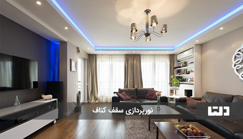 کناف سقف، امکانات ویژهای را برای نورپردازی خانه ارائه میدهد. میتوانیم از چراغهای هالوژن برای نورپردازی استفاده کنیم و یا با نوارهای ال ای دی، نور خطی زیبا و مدرنی را در فضا به وجود بیاوریم.