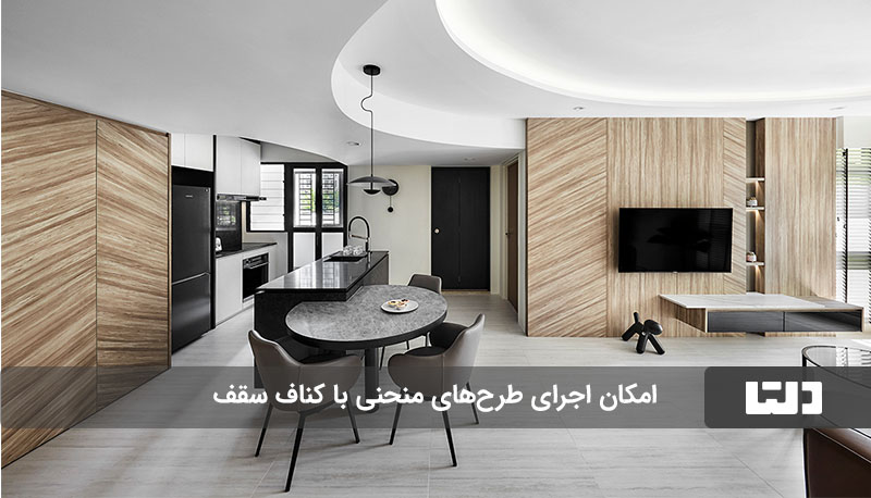 برشپذیری آسان کناف باعث میشود که بتوانیم انواع طرحهای جذاب منحنی و خطی را روی سقف پیاده کنیم و این موضوع باعث شده است که برای تمام سبکهای دکوراسیون منزل کاربرد داشته باشد.