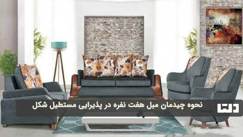 چگونه میتوانم مبلمان هفت نفره را در پذیرایی مستطیل شکل چیدمان کنم؟