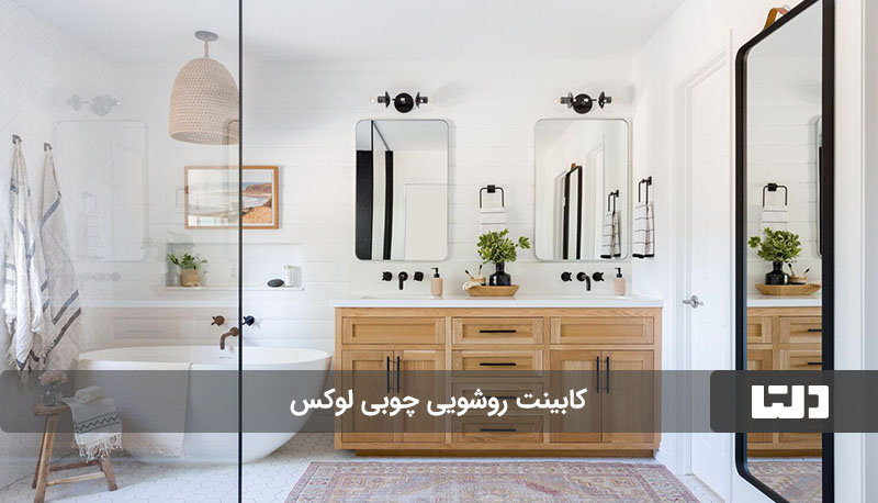 کابینت روشویی چوبی لوکس، جزئیات زیبایی دارد و جلوهای فاخر و زیبا به دکوراسیون سرویس بهداشتی و حمام شما میبخشد. با یک نورپردازی اصولی و زیبا میتوانید جلوهای شیک و دلنشین به فضای سرویس بهداشتی خود ببخشید. چوب در کنار تمام رنگها و متریالها زیبا به نظر میرسد. میتوانید با استفاده از یک روشویی روکار چینی یا سنگی، جلوهای بینهایت لوکس به سرویس بهداشتی و حمام خود ببخشید.