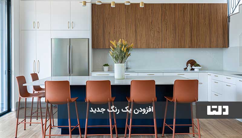 با انتخاب یک رنگ دیگر میتوانید جلوه جذابی به آشپزخانه خود ببخشید. برای مثال رنگ سبز، آبی یا زرد در کنار کابینت سفید زیبا به نظر میرسند و با رنگ چوب نیز همخوانی خوبی دارند. همچنین میتوانید با انتخاب لوازم دکوری شیک، یک آشپزخانه شاد و جوانپسندانه داشته باشید که همه از دیدن آن لذت میبرند. رنگ سوم لازم نیست حتماً درون کابینتها باشد. میتوانید با انتخاب پرده رنگی برای آشپزخانه، تنوع خوبی در فضا ایجاد کنید.