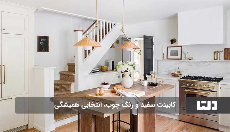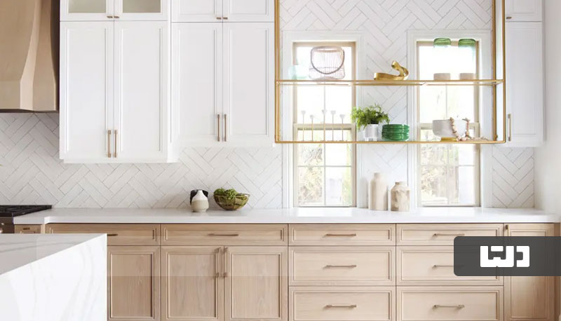 کابینت سفید و رنگ چوب، انتخابی عالی برای آشپزخانه مدرن
