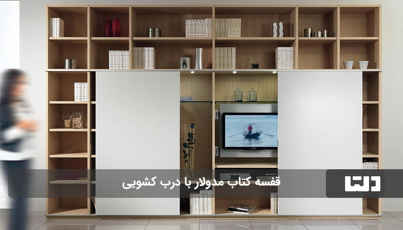 کتابخانه مدولار با درب کشویی، امکانات ویژهای را در دکوراسیون برای ما فراهم میکند. میتوانیم به این وسیله دیوار پشت تلویزیون را به یک کتابخانه تبدیل کرده و روی تلویزیون و بخشهایی از قفسه را با یک صفحه کشویی بپوشانیم. با این امکان، در فضای پذیرایی خود یک کتابخانه شیک دارید که گاهی تلویزیون هم روی آن نمایان میشود.