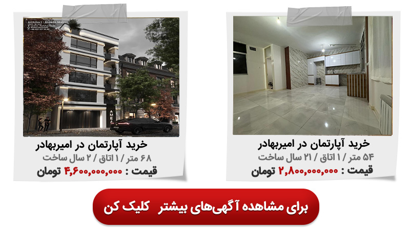 در جدول زیر میتوانید چند نمونه آگهی خرید آپارتمان در امیربهادر از سایت ملکی دلتا را مشاهده کنید.