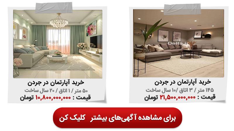 در جدول زیر میتوانید چند نمونه آگهی خرید آپارتمان در جردن از سایت ملکی دلتا را مشاهده کنید.