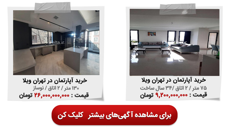 در جدول زیر می توانید چند نمونه آگهی خرید آپارتمان در محله قلهک از سایت ملکی دلتا را مشاهده کنید.