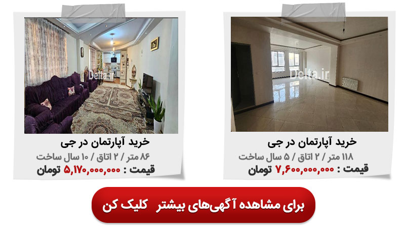 در جدول زیر میتوانید چند نمونه آگهی خرید آپارتمان در جی از سایت ملکی دلتا را مشاهده کنید.