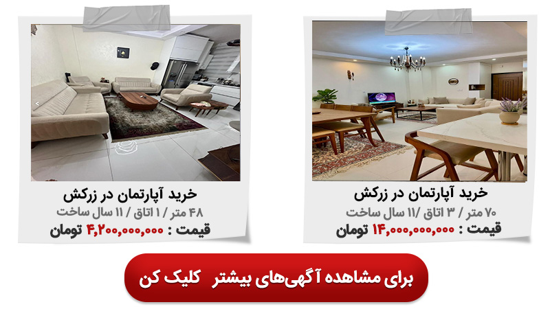 در جدول زیر میتوانید چند نمونه آگهی خرید آپارتمان در محله زرکش از سایت ملکی دلتا را مشاهده کنید.