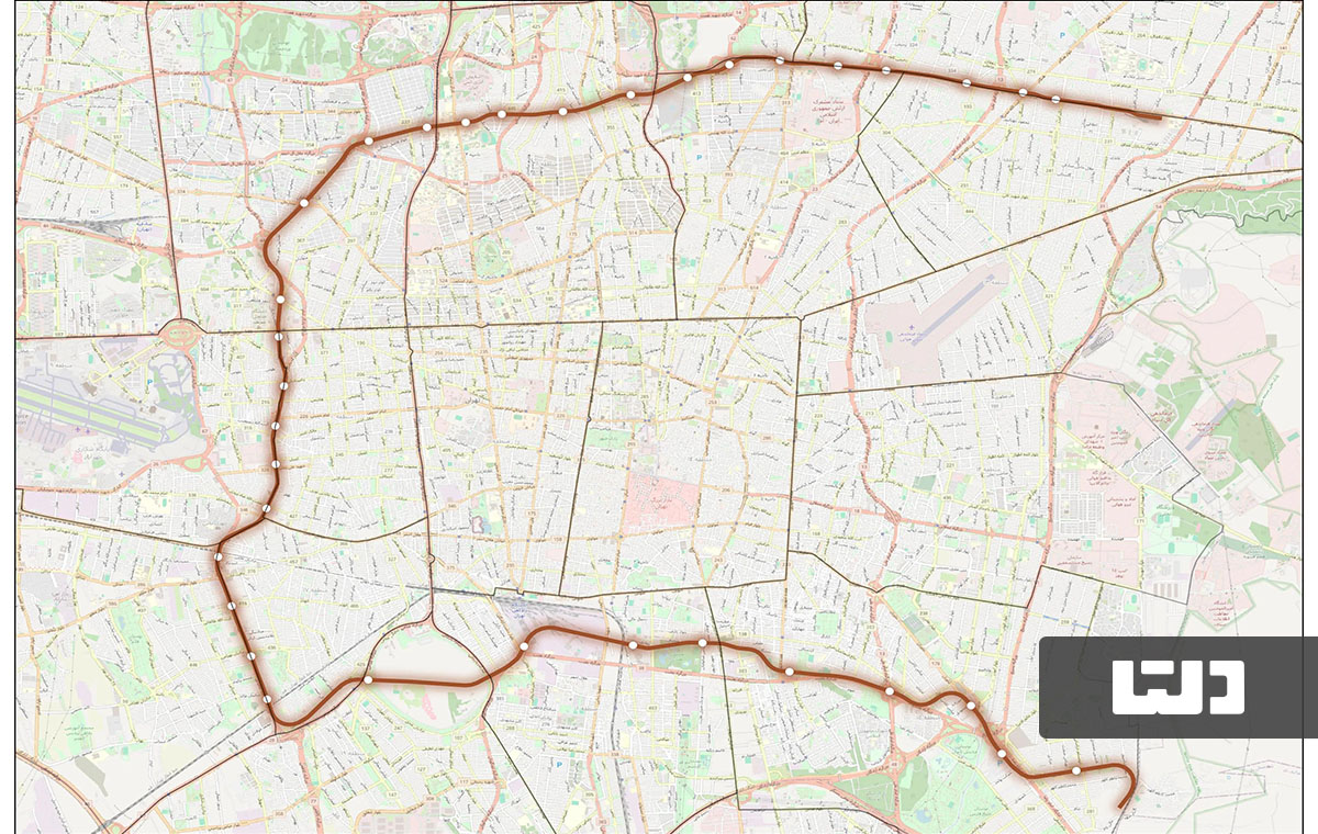 این خط از میان محلهها و مناطق پرجمعیت تهران عبور میکند و ایستگاههای متعددی در نقاط کلیدی دارد: